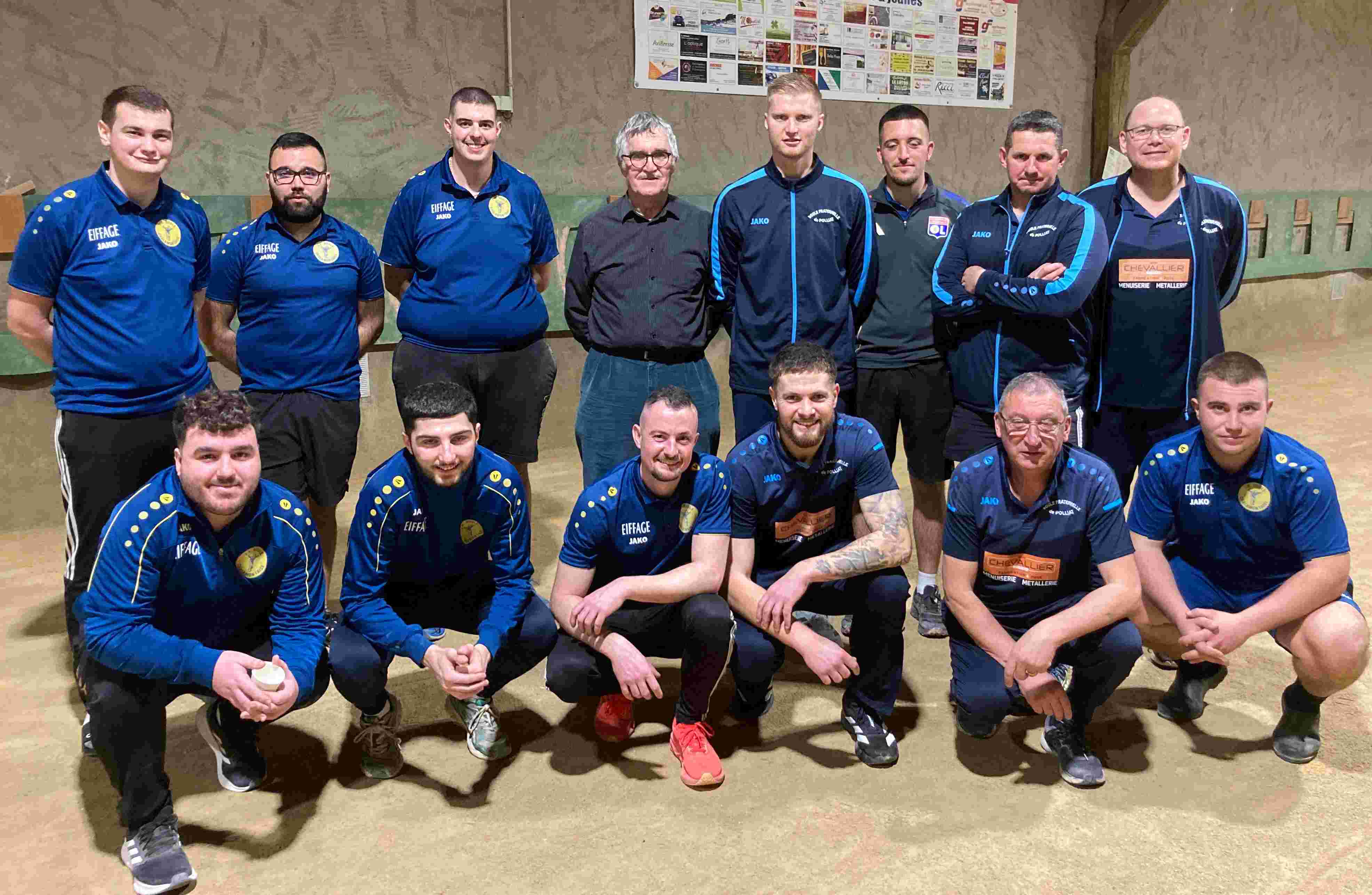 Pour l'emporter Polliat se devait de gagner les 3 trads , malheureusement seul le double Anthony Fion et Clément Chevallier s'imposait (8 - 1) et la victoire revenait aux équipiers de Daniel Taviaux (22 - 11) .voir la photo des 2 équipes